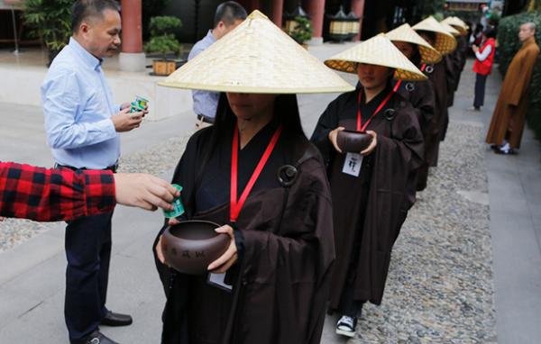 今年39岁的夏禹玺是一名企业管理咨询高管,她感觉平时工作太辛苦,没有好的机会去学习,所以选择进入佛门体验,过自己不曾有的出家人的生活,向法师学习佛教管理规则。七天中, 夏禹玺经历了打坐、跑香、学佛经、早晚功课、托钵体验等,她说,僧人的生活本质有着超出想象的清苦,七天中虽然肉体很痛苦,但内心却是无限喜悦与赞叹。