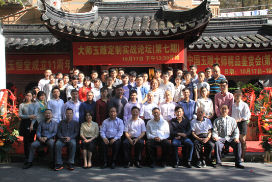 本报讯 深秋季节,秋高气爽,“第十期中国玉雕大师精品鉴赏会暨第七期大师玉雕实战论坛”活动于10月17日在玉恒堂上海总部如火如荼举行。中国玉石雕刻大师王金忠先生,中国青年玉雕艺术家黄杨洪先生,中国玉雕艺术评论家陆华老师,上海宝玉石行业协会副会长钱振峰先生,上海现代钟表珠宝商会秘书长华慧虹女士,华夏古玩城总经理杜豆豆女士,上海宝玉石行业协会秘书长郭林雪先生,海派玉雕大师杨东光先生、周鹏举先生、应小强先生,家玉文化经理张婕女士,资深收藏家王仁华先生、余佩松先生等大批玉友、藏家纷至沓来,共享艺术之美盛宴。活动现场欢庆热闹,座无虚席,嘉宾来客拔冗而至,欢聚一堂。