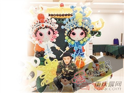 陈曦是合川人,五年前还是一名房屋销售人员,一次偶然的机会,他在网上看到有人用气球编的小公仔非常漂亮,觉得很新潮,便开始留意。
