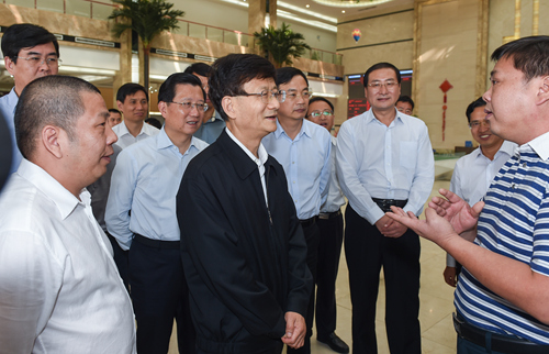 10月17日至22日,中共中央政治局委员、中央政法委书记孟建柱在江西调研。图为孟建柱在赣州南康家具产业园考察。王建军摄