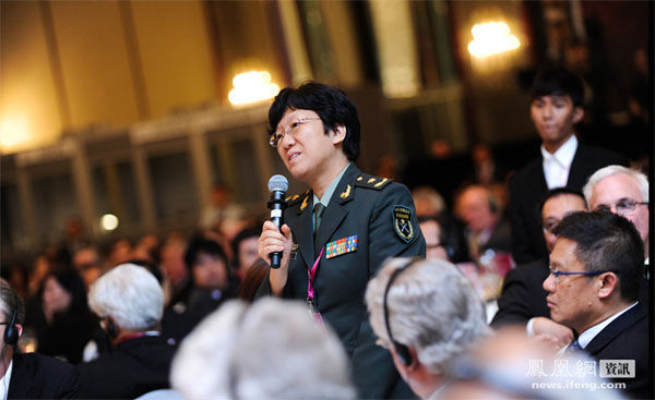 针对美国前海军作战部长提出的“南海军事化”概念和“南海航行自由”问题,军事科学院中美防务研究中心姚云竹少将连发三问:“如何界定南海地区军事化概念”“在该地区军演是否算军事化”“派驻军舰驻守南海是否算军事化”,并指出,“南海航行自由”是一个伪命题。图为2014年“香格里拉对话”中姚云竹在提问。