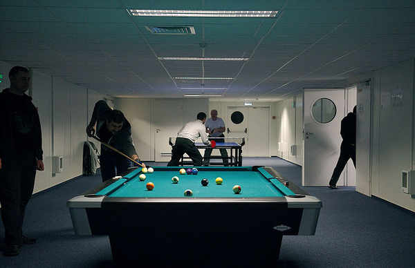 在繁重的工作之余,工人们每天也会抽出一点时间来放松。(网页截图)