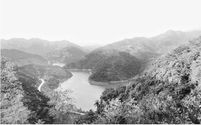 站在九曲湾库区岸边,顺着黄圣松所指方向望去,距离九曲湾水库500多米处的百亩果园已经不复存在,青山之间,湿地松和杉树在风中摇曳。