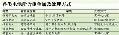 聂永丰认为,市场上目前已很少能见到含汞、镉电池,但以手机常用的锂电池为代表的可充电电池数量激增,这种可回收利用的电池,如果也随生活垃圾丢弃,会造成极大的资源浪费。他建议,至少目前电池行业可以做好销售环节的标记工作,标明可回收和不可回收,回收的各个环节也要紧密衔接。“要让市民都明白,而不是简单地摆个回收箱,什么电池都往里装”。