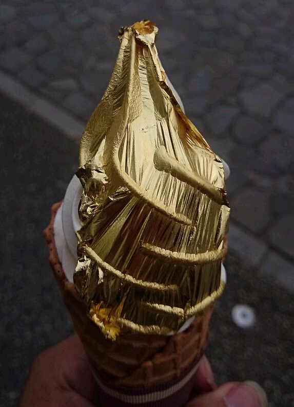 报道说,金箔冰激凌在金泽市的数家店铺有售。其中一家店在兼六园附近,售价为891日元(约合人民币47元)。