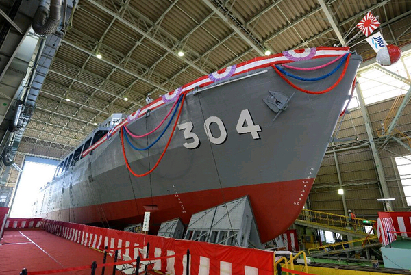 日本海上自卫队为新型扫雷舰“淡路”举行命名、下水仪式(网页截图)