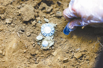 现场发掘出的帽徽供图/龙越慈善基金会