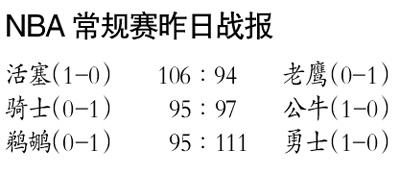 广州日报讯 (记者 许蓓) 昨日,2015~2016赛季NBA常规赛正式打响,东部两强相遇,公牛主场迎战骑士,最终公牛以2分险胜。卫冕冠军勇士则在主场对阵鹈鹕,勇士当家球星库里在这场比赛中手感火热,他全场砍下40分,成为继贾巴尔之后首位能在新赛季揭幕战中得到40分的上赛季常规赛MVP,这也是库里个人职业生涯中第10次单场得分至少40分,仅在第一节,库里就得到了24分。
