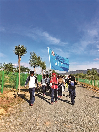 10月10日,北京四中璞瑅学校中学部全体师生在潮白河进行主题为“行走·坚持·超越”的20公里徒步拓展活动。穿过公路、村庄、农田,学生们行走在人生的旅途上……