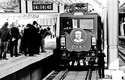 刘钰峰是“毛泽东号”第十二任司机长,他告诉北青报记者,“毛泽东号”机车1946年10月30日命名,先后经历了蒸汽、内燃到电力机车的五次换型,2014年12月25日“毛泽东号”机车第五次换型为运行速度160公里/小时的和谐3D型1893号电力机车。