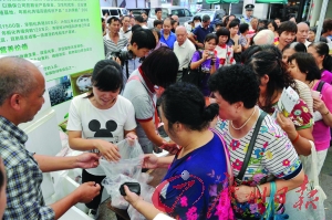 昨天的绿博会现场,销售这些高明的特产的摊位,均被市民围着水泄不通。如果你还要问绿博会现场有多火爆,举个例子:在海达公司的“三洲黑鹅”摊位,一大早便排起了长长的队伍,最后还得靠警察来维持秩序。300多只鹅,不到40分钟便销售一空。