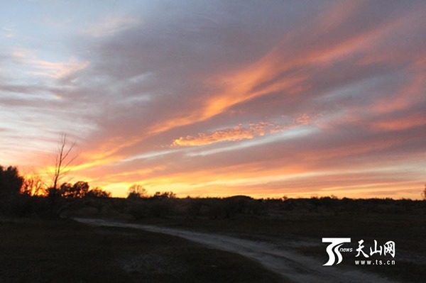 一八五团额尔齐斯河现火烧云奇观