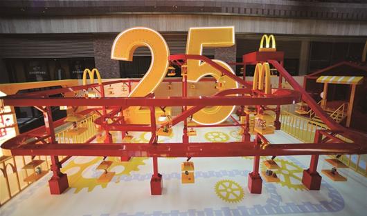 据悉,10月22日至11月1日,麦当劳中国大型玩具展览“奇趣玩具厂”在上海正大广场四楼黄金大道向公众免费开放。展览以“制造快乐的玩具工厂”为设计理念,运用吊塔、输送带、仪表板等工厂元素贯穿始终,展馆分为动画全明星区、热门卡通区、Hello Kitty和朋友区、麦当劳叔叔和朋友区、动物世界区和其它经典区。麦当劳中国首席执行官张家茵女士说,“我们希望在麦当劳中国25周年之际,在‘奇趣玩具厂’与中国消费者一同回味这份属于麦当劳的独一无二的快乐。”