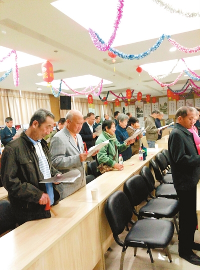 居民们在道德讲堂上唱道德歌曲