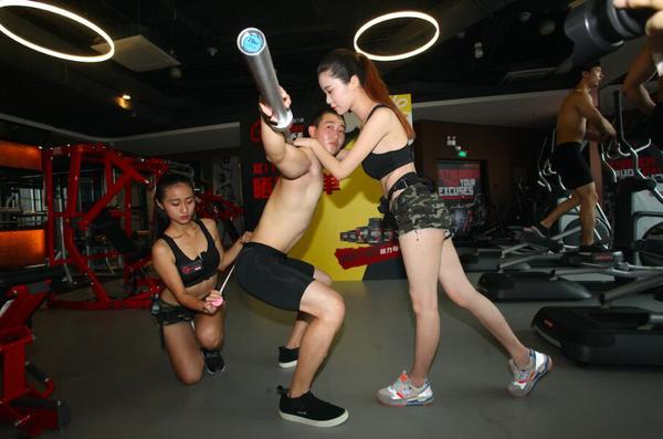 性感女模健身房抓“壮丁” 按肌肉大小派红包