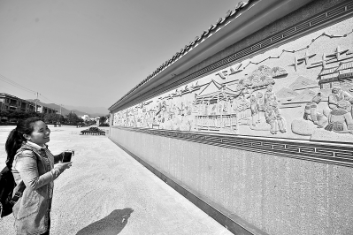 近年来,罗源县注重提升城市品质,将特色文化融入景观建设,为每个公园“定制”文化主题,让主题文化“入住”公园。图为在起步镇庭洋坂村,游客饶有兴致地观看畲族文化长廊。郑秀杰 陈雁真 摄