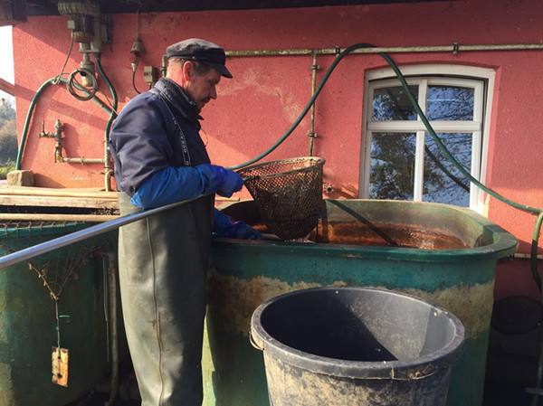 施罗德的家在哈弗尔河边。赶到他家时,施罗德正在处理鱼。他告诉新华社记者,自己从1993年开始捕捞螃蟹,如今找他买螃蟹的客户遍布德国各地。