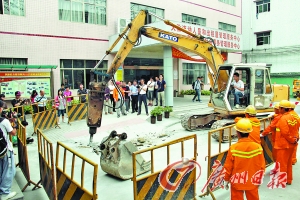 2014年4月16日,警方对增城大墩村盗水点进行开挖取证。记者邵权达摄
