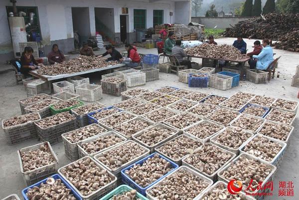 人民网襄阳11月5日电 湖北襄阳谷城县五山镇黄山垭村村民姚家勤因自身残疾,过去一家4人成为贫困户。为了摆脱贫困,姚家勤3年前靠贷款发展袋装食用菌,现已创办了“黄山垭食用菌专业合作社”。有了合作社和产业,姚家勤又带动村里贫困户致富,吸纳20个贫困户的人常年打工,人均收入7000多元,高的达到1万多元。今年食用菌已达10万袋,产值达70万元。图为打工的贫困村民在菇场剪除香菇蔸子。(帅瑜 摄)![]()