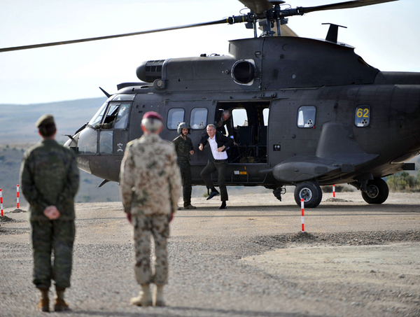 11月4日,在西班牙萨拉戈萨举行的陆空联合作战演习中,北约秘书长斯托尔滕贝格抵达。新华社记者谢海宁摄