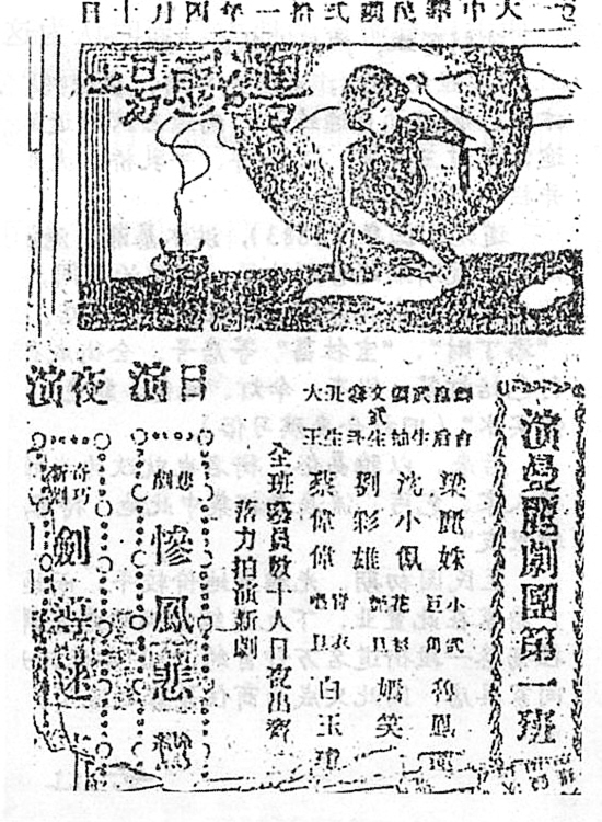 城内大新公司:主演有宋竹卿、谭兰卿(时人戏称二人为“肥兰瘦竹”),其他演员有朱剑秋、花弄影、车秀英等。