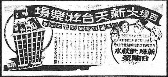 城内大新天台游乐场的戏台虽小,但每天都有粤剧上演,又聘黄炳铿、陶醒非、黄艳侬等名角担纲演出,还有京剧演出,拥有一定的观众。城外大新天台则改京剧场为新派剧场,增加游戏项目。两家天台游乐场一直维持到广州沦陷而最终停业。至此,广州四大百货公司的天台游乐场,就全部谢幕了。