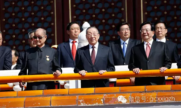 在两个月前的9月3日,纪念抗战胜利70周年阅兵式在天安门广场举行。“政事儿”(微信ID:gcxxjgzh)注意到,年近百岁的宋平戴着墨镜,胸前戴着勋章,穿着中山装,登上天安门城楼、观礼检阅。