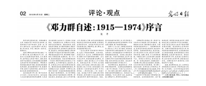 今年9月15日,《光明日报》刊发宋平为《邓力群自述:1915—1974》一书所作的序言。