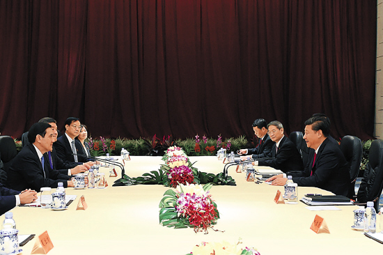 习近平指出,今天是一个很特别的日子。两岸领导人见面,翻开了两岸关系历史性的一页。历史将会记住今天。曾几何时,台海阴云密布,两岸军事对峙,同胞隔海相望,亲人音讯断绝,给无数家庭留下了刻骨铭心的伤痛,甚至是无法弥补的遗憾。然而,海峡隔不断兄弟亲情,挡不住同胞对家乡故土的思念和对家人团聚的渴望。同胞亲情的力量,终于在上世纪80年代冲开了两岸封锁的大门。2008年以来,两岸关系走上和平发展道路。过去7年,台海局势安定祥和,两岸关系发展成果丰硕。两岸双方和广大同胞为此付出了大量心血。正因为有了这7年的积累,两岸双方才能迈出今天这历史性的一步。