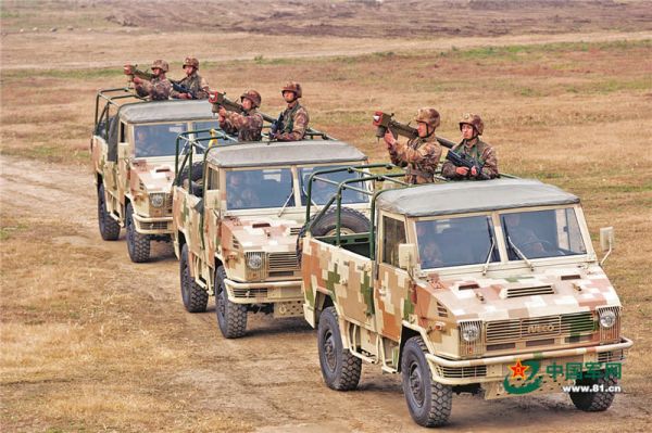 资料图:解放军战士利用车辆进行便携式防空导弹的集群发射。