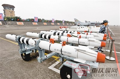 空对空导弹,停机坪上的歼10战斗机、歼11战斗机等一亮相就吸引了大家的目光,不少人还在解说员的指导下,亲身体验了轻武器装备。飞机发动机的轰鸣声传来,飞行表演开始了!两架歼11战机直冲云霄,在一连串急速转弯后,战机编队以50米高度掠过机场上空。据悉,其中一架战机,是由“金头盔”飞行员蒋佳冀驾驶。![]()