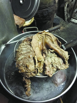 每天中午,做完早市后,阿光一家就会开始熬老汤、卤牛肉。往锅里加水加药材,放新鲜的牛肉卤制,如此循环已经做了31年。阿光告诉记者,这锅老汤添加了十几种中药材、香料,包括八角、陈皮等等,但量并不重,这样药材味不浓,但又会吊出牛肉本身的香味,“牛肉本身就是香口的食材,所以配料不能重了,就像中医配药一样,要君臣相得。”