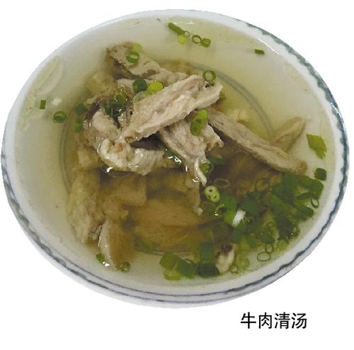 粤西靠近广西,也许是受广西米粉的影响,所以吃法就跟广式牛杂有所区别。广式牛杂是吃牛杂和萝卜,而阿佑牛腩粉是吃牛杂、牛腩和河粉。客人在店里坐下后,阿光就会切上一份卤好的牛腩牛杂,在老汤里烫热,然后淋上一勺牛肉清汤,接着又把河粉烫热,在碗里加一小勺牛肉老汤,点缀上几粒葱花,洒上几滴香油。如是,给客人端上一碗粉一碗肉,那碗肉是肉香汤清,这碗粉则是汤浓粉淡,一浓一淡之间,对比分明,让人印象深刻。
