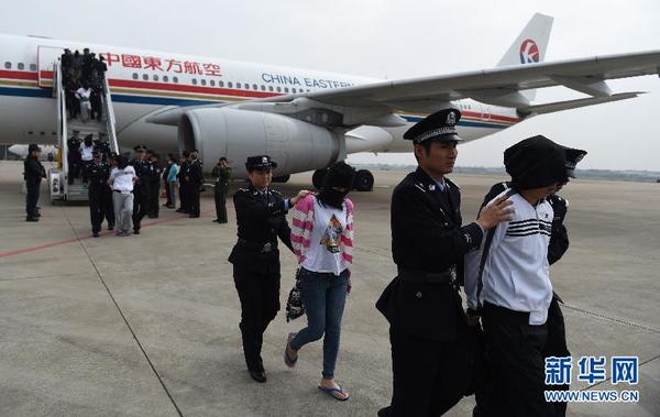 11月10日,四架从印度尼西亚雅加达、柬埔寨金边起飞的中国民航包机分别在北京首都、上海浦东、杭州萧山和广州白云机场降落,254名大陆犯罪嫌疑人被中国警方押解回国。至此,全国打击治理电信网络新型违法犯罪专项行动首战告捷,涉及内地20多个省区市以及香港的4000余起特大跨国跨境电信诈骗案成功告破。新华社记者 黄宗治 摄