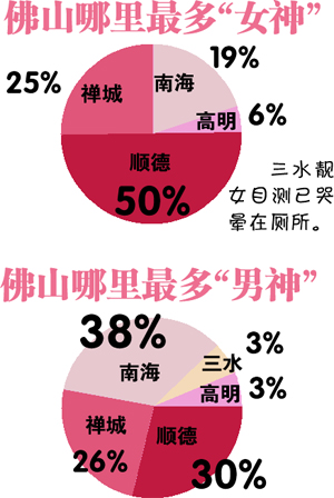 对于佛山男同胞而言,顺德的女同胞更加“抢手”。数据显示,分别有50%、25%的佛山受访者愿意寻找顺德、禅城的女性作为人生的另一半,而三水女孩在调查中受到“冷遇”,没有佛山男性选择三水女性作为妻子。