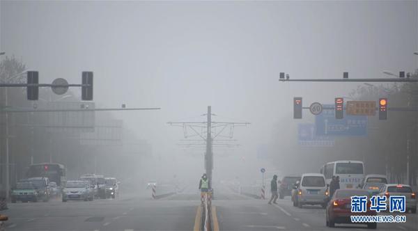 11月12日,汽车行驶在沈阳市区。当日,辽宁省沈阳市遭遇大雾天气,能见度小于200米。气象部门发布了大雾橙色预警,沈阳周边部分高速公路受到大雾影响于7时关闭。新华社记者 姚剑锋 摄
