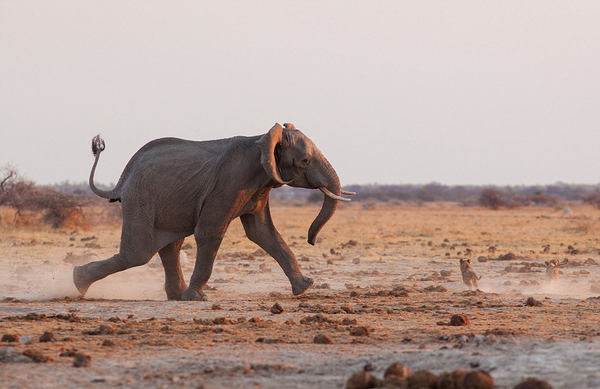 非洲大草原上演雄狮大象争水大战(高清组图)