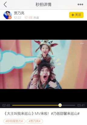 贾乃亮秒拍携甜馨共发布《大王叫我来巡山》