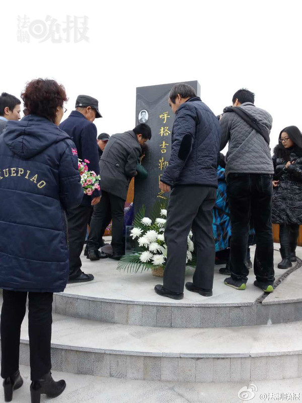 @法制晚报:【李三仁尚爱云夫妇今晨赴呼格新坟祭奠】今晨7时,李三仁尚爱云夫妇在长子和三子的陪同下,赶到距离呼和浩特市30公里外的呼格吉勒图新墓地,主持并参加儿子呼格吉勒图的迁坟祭奠仪式。祭奠过程中,尚爱云多次因过度伤心抱着呼格吉勒图的新墓碑哭倒在地。