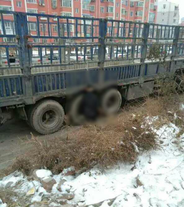 11日上午长春市经开八区公交站旁,被发现“跪着吊死”在一辆货车旁的男子。网络图片