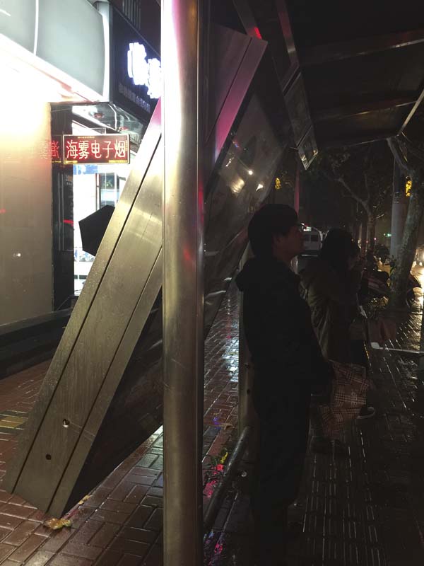 被撞歪的站台广告牌。
