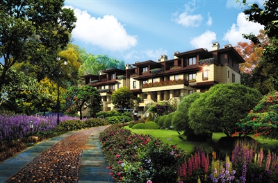 路劲国际城120平方米的庭院叠墅,坡屋顶,天蓝瓦,红白相间的外立面,与周围丰富的自然资源和谐共生。赖特风格建筑理念的优势由此也被发挥到极致:绿地草坪、原生大树、茂密灌木,林阴景观,微坡地生态园林、丰富植物群落,诠释精致生活。