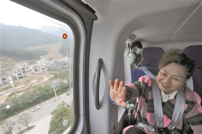 70岁的杨世兰过生日,得到三个儿子送的特殊礼物:花数万元包一架直升飞机,让她和80余名亲朋轮流乘坐,上蓝天飞翔,让她和亲朋们惊喜万分,过了一把坐直升飞机的瘾。这是11月14日下午,发生在北碚十里温泉城申基通用航空公司基地的一幕。