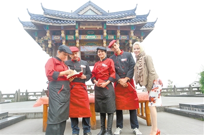 本报讯 (记者 杜海)水煮鱼、回锅肉、过桥抄手……这些地道的重庆菜出自一群老外之手,味道如何?昨日,来自西班牙、墨西哥、哥伦比亚、厄瓜多尔的4名外国朋友在学习一周重庆菜的制作后,在陶然居大观园录制央视西班牙频道的《美食训练营》时展示了自己的厨艺。