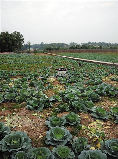 本报讯 (记者 江亚蔓)11月13日上午,何埂圣水湖现代农业园区迎来了植保无人机应用试飞。无人机现场进行了农药喷洒示范,10公斤的农药能作业10多亩农田。此次试飞的无人机实现了技术革新,可以让农民在手机上进行操作。
