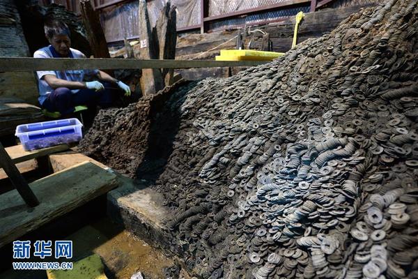 工作人员在海昏侯墓考古发掘现场清理五铢钱(8月14日摄)。新华社记者万象摄