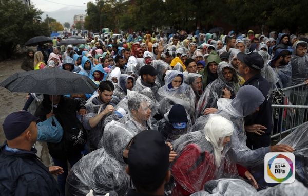 资料:10月7日,塞尔维亚南部城市普雷舍沃,难民排队注册登记。(图片来源:新华/美联)