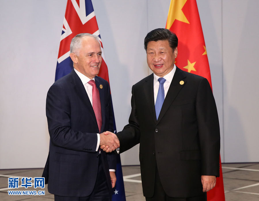 习近平指出,中澳同处亚太地区,两国拥有重要共同利益和广阔合作空间。我们愿同澳方在互信互利基础上,深化各领域友好交流和务实合作,推动中澳全面战略伙伴关系健康稳定向前发展。双方要密切高层交往,加强沟通、增进互信。双方要发挥互补优势,提高务实合作水平,推动中澳自贸协定尽快生效,推进“一带一路”倡议同澳方“北部大开发”计划对接。我们鼓励中国企业参与澳大利亚北部地区铁路、公路、水利等项目建设,希望澳方为中国企业提供公平投资环境。中澳要开展好防务合作,共同打击腐败犯罪,增进教育、地方、旅游合作。中方愿同澳方加强在联合国、二十国集团、亚太经合组织等多边机制的沟通和协调。