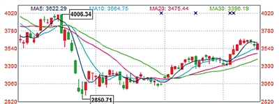本报讯 (记者 黎胜斌 实习生 余龙)昨日大盘走势出乎大多数人的意料。昨日早盘,因外围消息影响,沪深两市双双低开。当大多数投资者感到悲观的时候,市场情绪开始发生转变,股指震荡走高。午后,沪指开盘持续震荡,下午两点半左右翻红,临近尾盘沪指又一次站在3600点上方。截至收盘,沪指报3606.96点,涨26.12点,涨幅0.73%;深成指报12620.83点,涨218.34点,涨幅1.76%;创业板涨幅更是超过3%,报2797.16点。