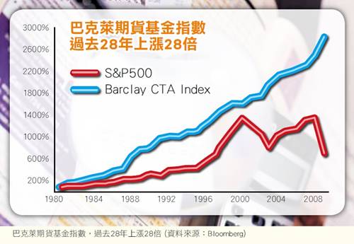 另外,期货基金多半是以追求「绝对报酬」为主要目标,也就是要在不同的市场行情状况之下都要能有获利表现,这与传统共同基金的相对报酬观念不同,也因此在国外受到很多法人机构或退休基金的青睐。